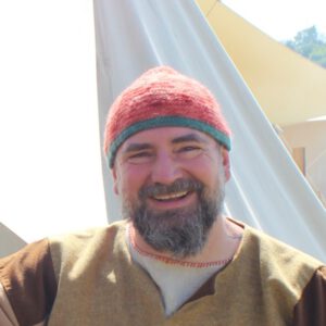 “Frühmittelalterliches Handwerk und hier besonders Lederarbeiten haben sich für mich zu einer echten Leidenschaft entwickelt. Gemeinsam mit Kunolf bin ich aber auch für das organisatorische Drumherum verantwortlich.”